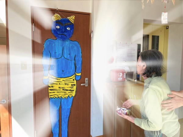 「鬼は外」「福は内」と掛け声して豆をなげてもらいました!!
