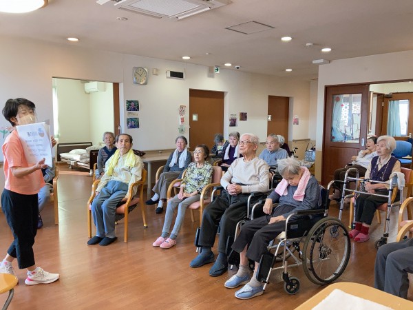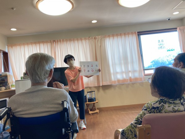 1階、2階の利用者様が集まり、ノーアエクササイズとタオル体操を行いました♪