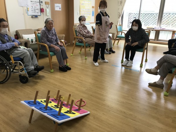 今回は本日のレクリエーション「輪投げ」のご様子をお届け致します!!