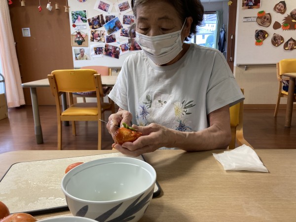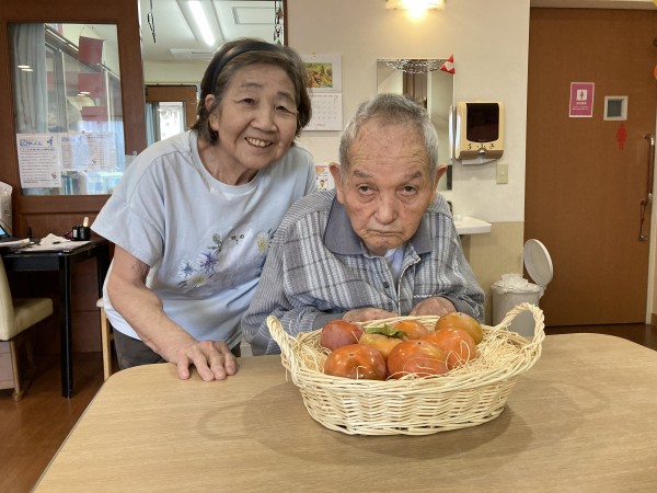 柿を捥いでくださったので1階のご利用者様が窓から顔を出してご挨拶。