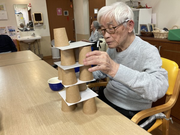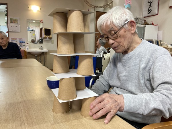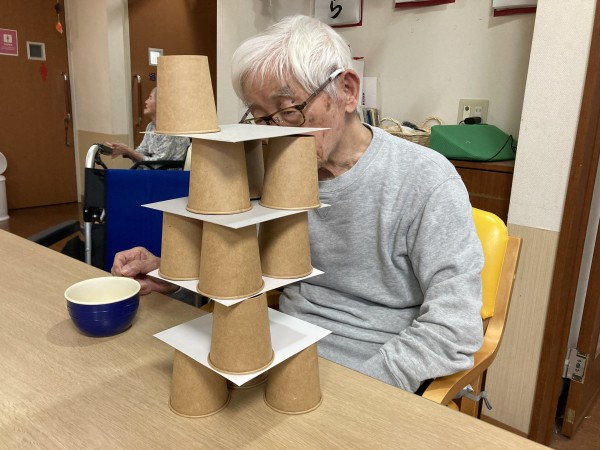 紙コップでジェンガです(笑)