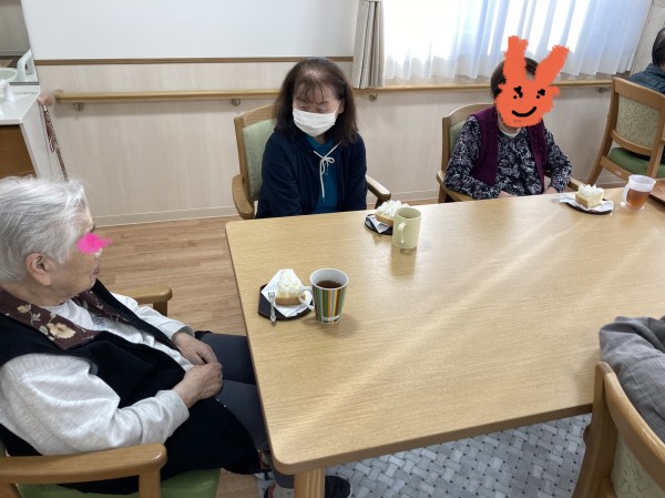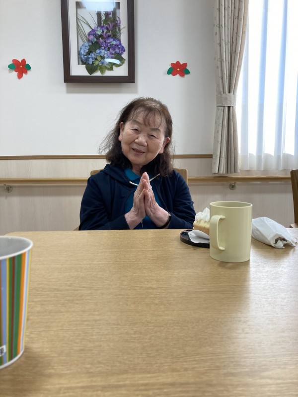 他利用者様達に、お誕生日の歌をプレゼントされ、ちょっぴリ照れながら、ありがとう、と喜ばれていました。おやつにケーキを作り、おしゃべりしながら召し上がり、楽しいひと時を過ごしていただきました。これからも、元気に楽しく過ごしていただけたら、スタッフは嬉しいです。