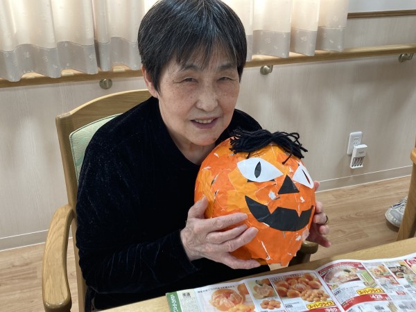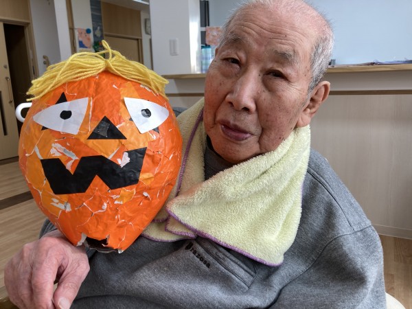 昨日のハロウィンのジャック・オ・ランタンがクリスマスのサンタクロースに大変身しましたが、なんと‼️今度は節分の鬼に変身中です。白いひげを剃って毛糸でカツラを作り❓