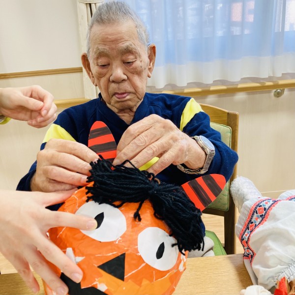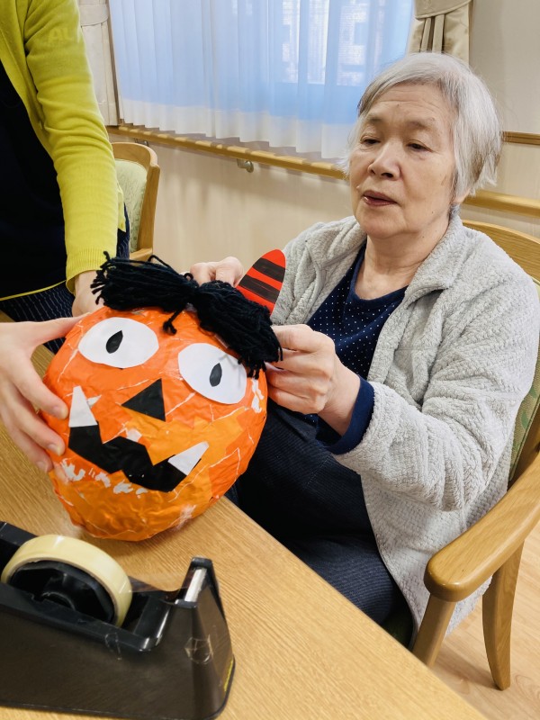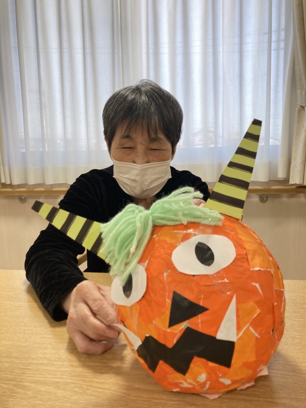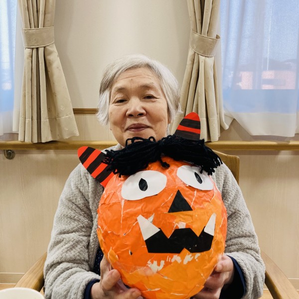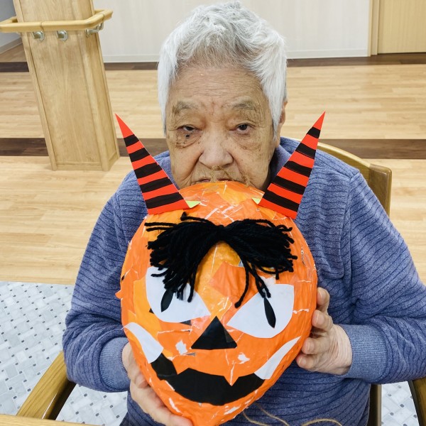 昨年のハロウィンで作ったジャックオランタンが今度は鬼に変身中。牙と角が生えて、鬼がやって来ました〜❗️