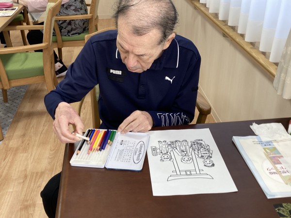 食後のひと時は塗り絵、読書、新聞‥その日の気分でのんびり過ごします♪