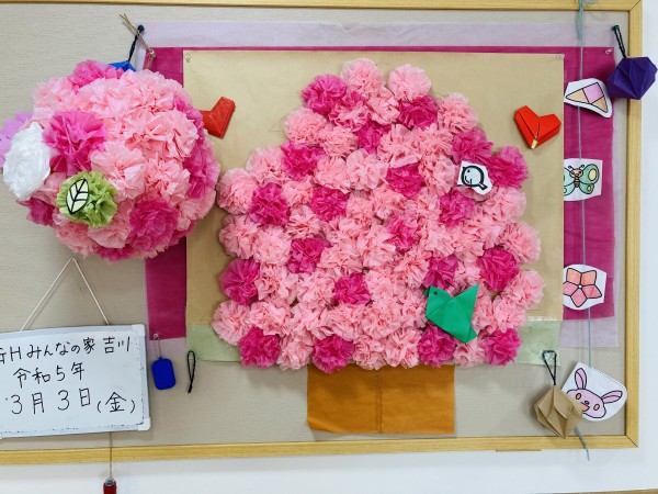 皆さんで1つずつ手作りした桜が満開です(๑˃̵ᴗ˂̵)
