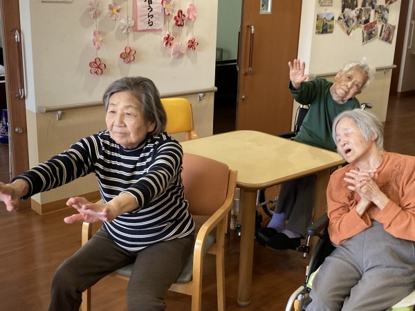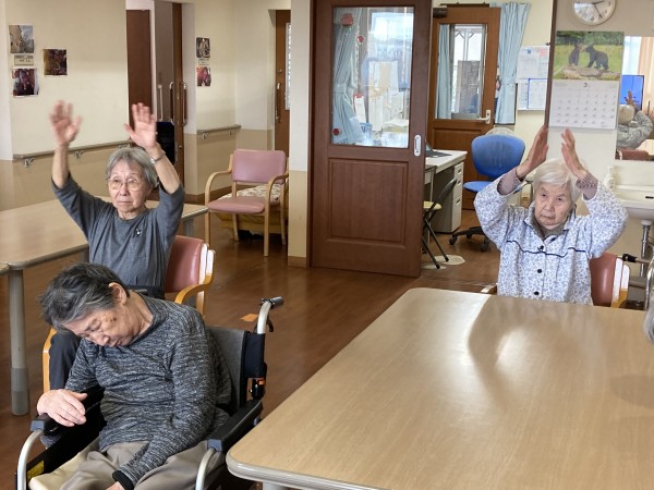 テレビ画面の指導員の動きに合わせて体を動かしてもらいました!