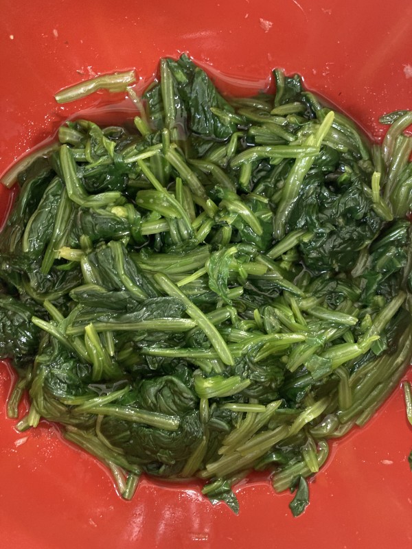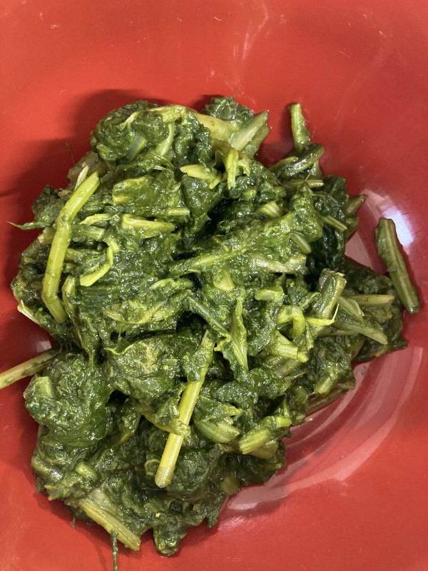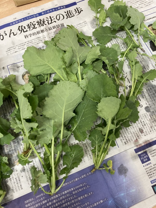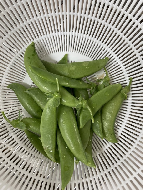 ホームで採れました❗️かき菜&スナップエンドウ❗️と定期的に届けて下さる葉物野菜の中のほうれん草をホーム長が茹でて味付けをしてくれました〜♪まずは、スナップエンドウをマヨネーズでパクリ❤️