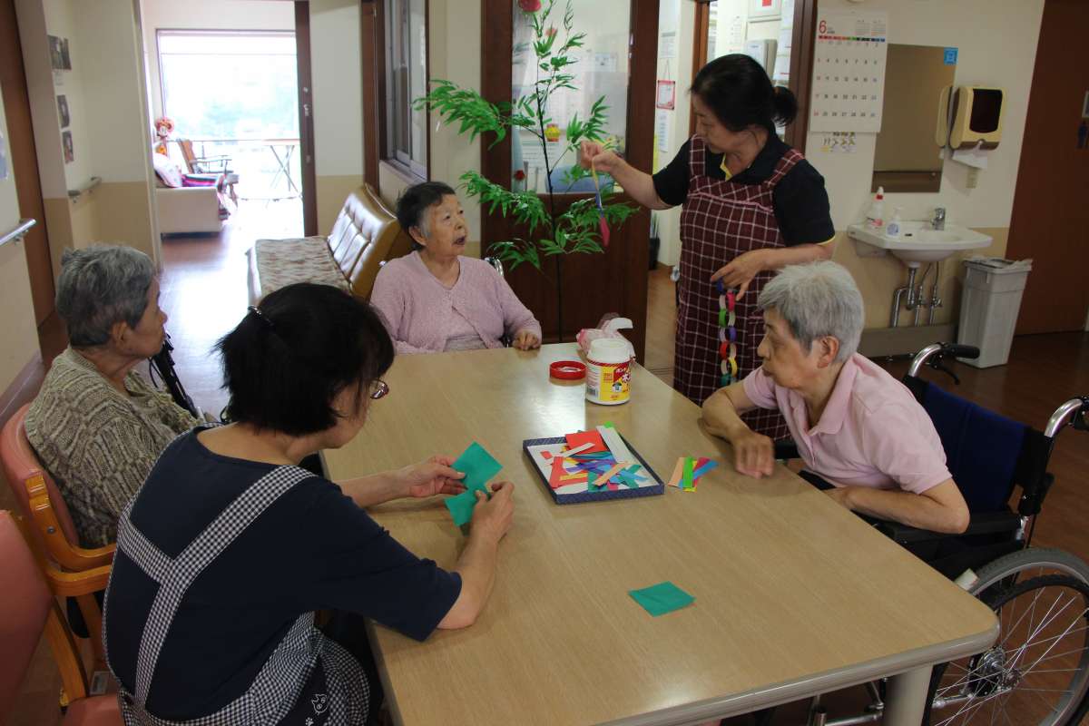 ご利用者様と一緒に、七夕飾りを作りました(~_~メ)
