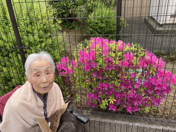 今日はお天気も良く散歩に出て見るとパンジーやツツジがとても綺麗でした。「キレイだね〜」とご利用者様も一緒にパシャリ!!