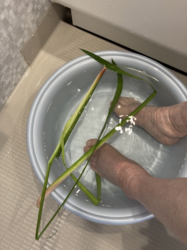 せっかくなので身体を洗っている時も足浴で菖蒲湯を楽しんでいただきます。