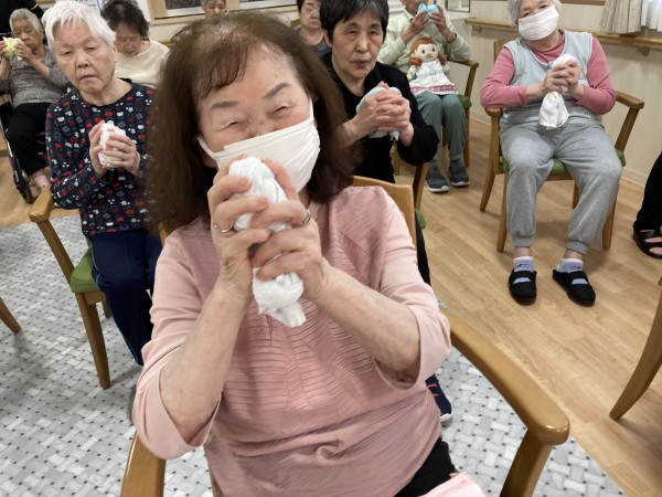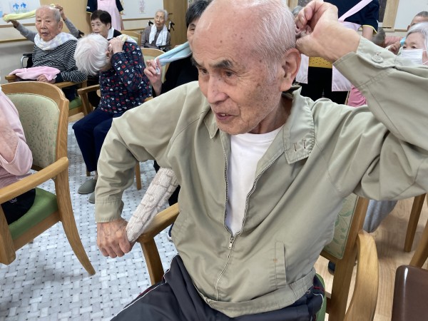 まだまだ、やるぞ!背中もギュッ!ギュッ!ギュッ!身体もほぐれてこんなに腕も上がります♪皆さん、今日も一日元気に過ごしましょう♡