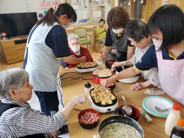 利用者様も笑顔でたこ焼きを運んでくださいました〜!(^^)そして来設されたご友人やご家族様との団らんを喜ばれ楽しいひと時を過ごされました(*^^*)