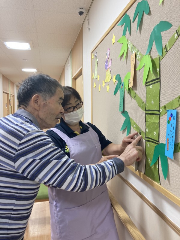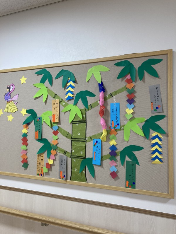 まもなく七夕です。どのフロアももう少しで完成しそうです♪笹の葉に願いを込めて飾りつけ〜(*^o^*)