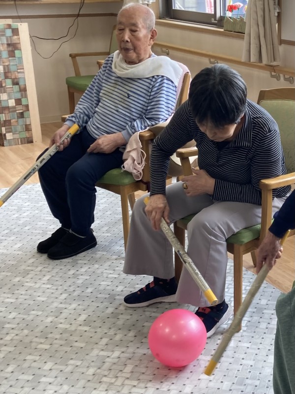 皆さんでサッカーゲームです♪新聞棒を使ってゴールを決めます!