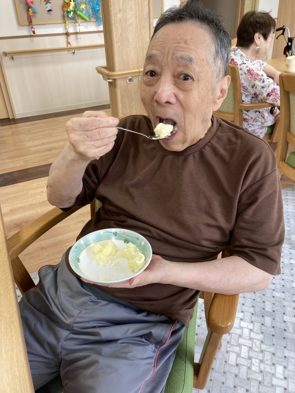 利用者様に合わせてこちらではマッシュポテト風にして見ました。マヨネーズをかけて「いただきま〜す♡」