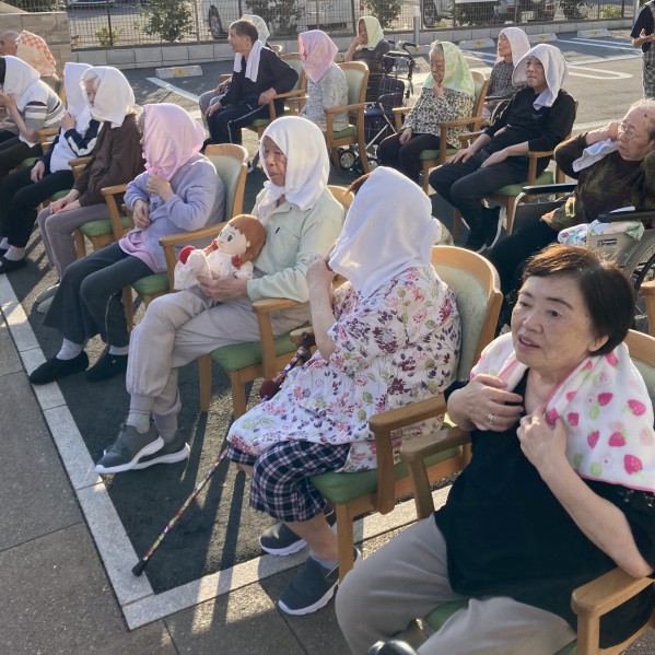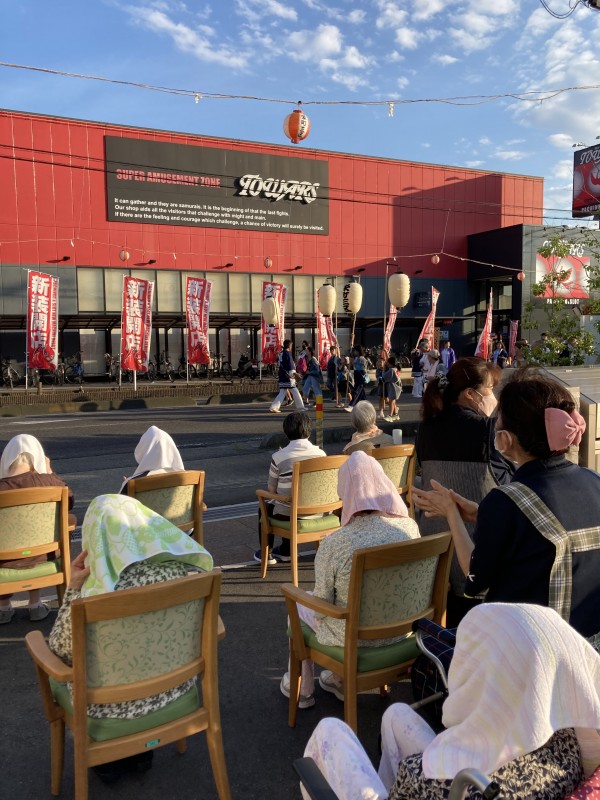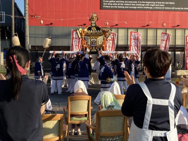 夕方にはホームの前をお神輿が通ると聞き、皆さん大喜びです♪夕食を早めに済ませてホームの門の前に集合〜!