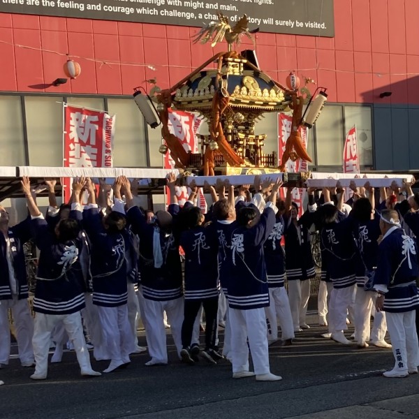 「あいよ!あいよ!」大きな声とともにお神輿が高く上がり、上空へと放り投げられました!