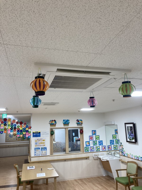 まだまだ続く夏ですが、スイカやハイビスカス、ひまわり、朝顔などが描かれたカラフルな提灯でお祭り気分を味わいながら、明るく楽しく元気に過ごしましょう(*^o^*)