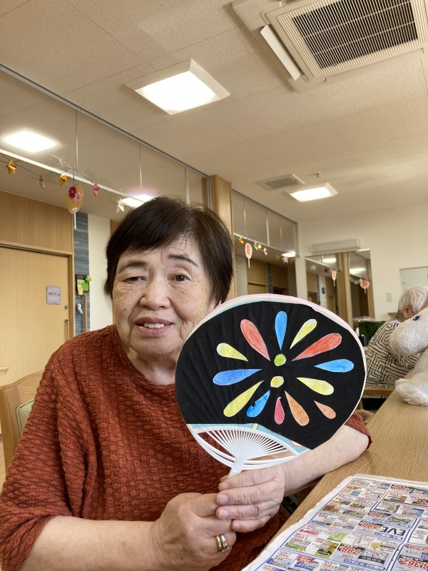 「毎日、あついね〜」の声にお答えして今日はうちわ作りに挑戦です(^∇^)