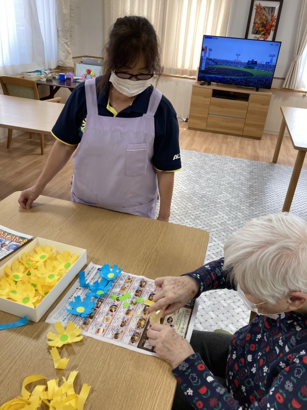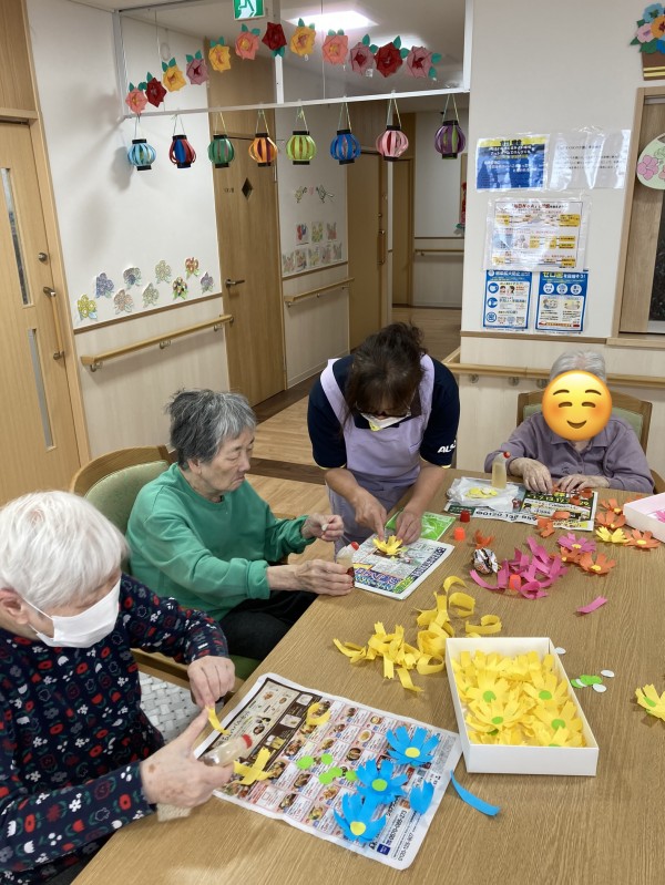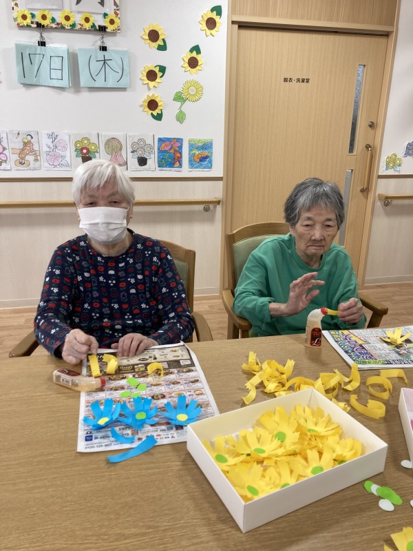 9月の壁飾りと聞いて、皆さん「もう8月も半ば過ぎたもんね〜早いね〜」と会話をしながら和やかにお花作りをされました(*^^*)♪