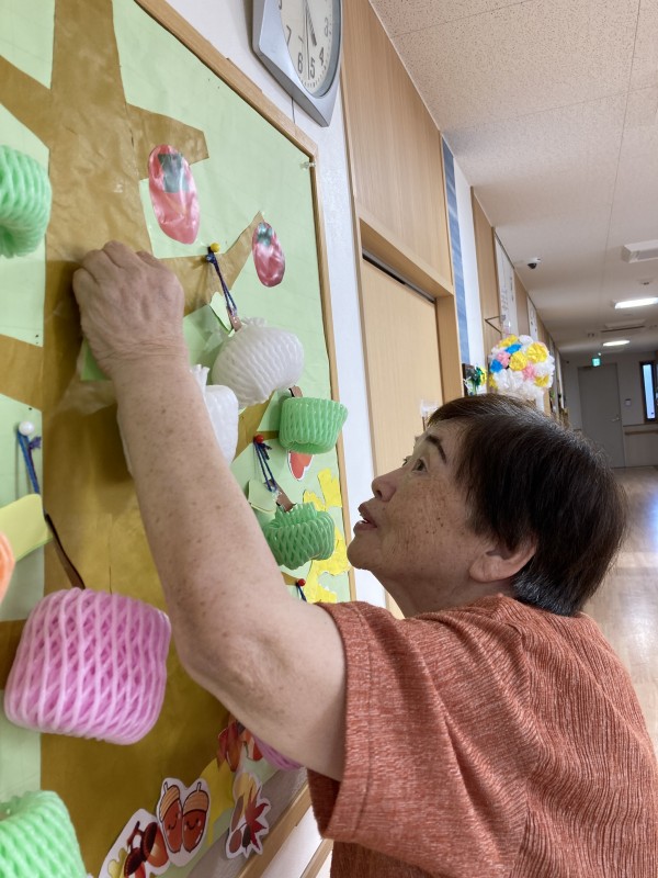 職員がフルーツキャップをたくさん持ってきてくれました。これを使って秋の味覚作りをしましょう♪