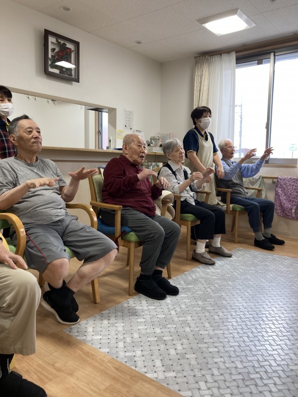 本日は地域運営推進会議・家族会の前にご利用者の皆様が日々どんな体操をしているのか、出席者の皆さんに様子を見て頂きました♪