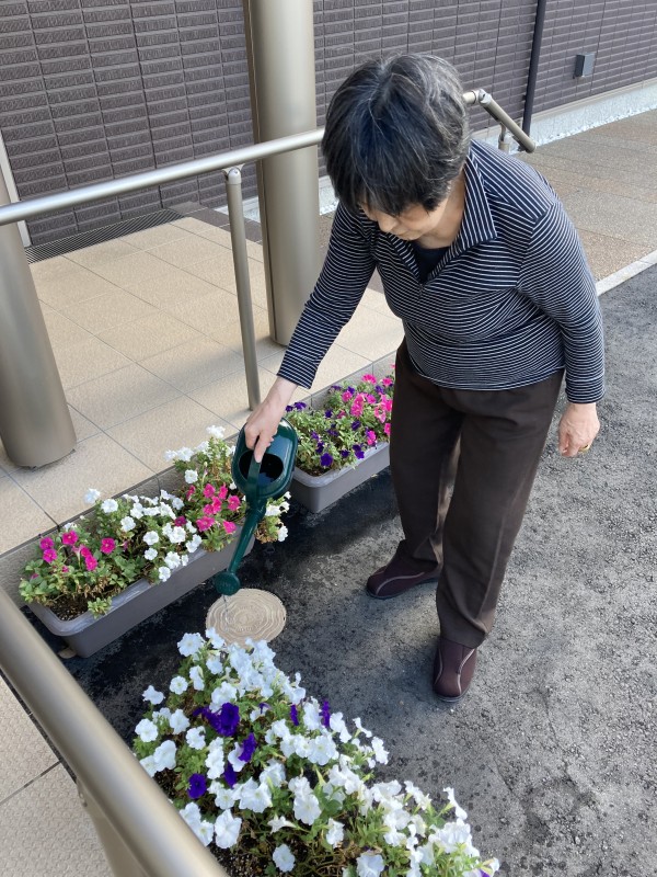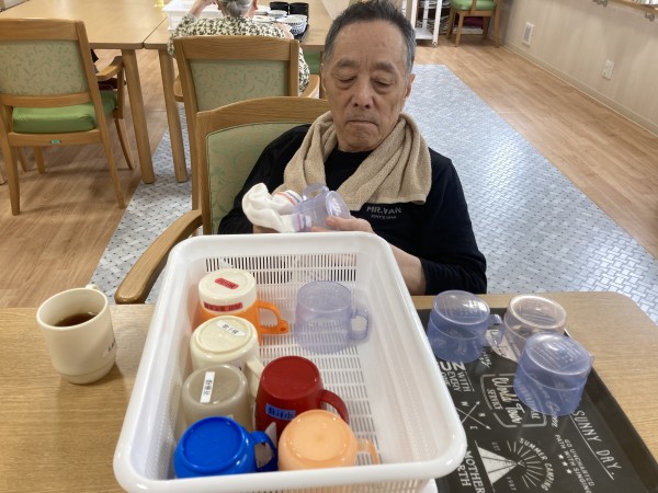職員と一緒に朝のゴミ出し、お花の水やり、食器拭き等『手伝うよ』と言って下さり、いつも、ありがとうございます♪