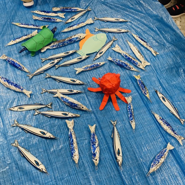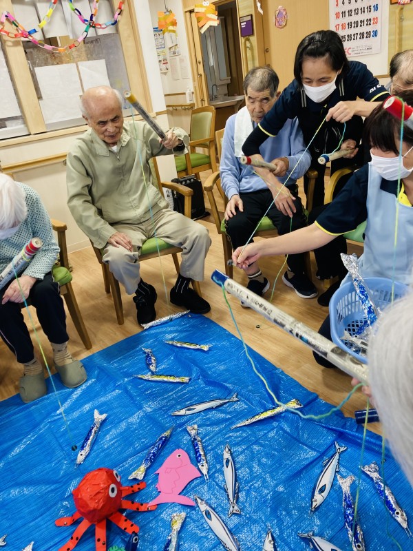 魚釣りゲーム大会では秋刀魚、タコ、亀などたくさんの海の生き物が登場!