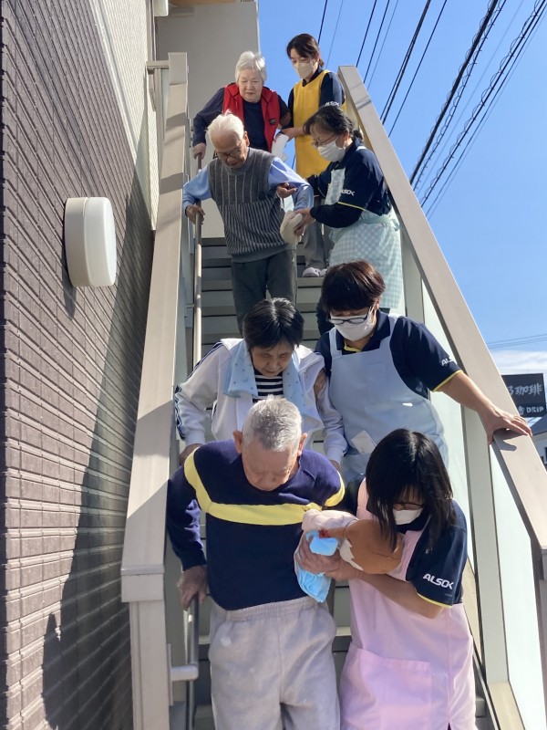 今回は夜間の火災を想定し、火災が起こった時に慌てずに避難誘導が出来るよう、職員一丸となって訓練に取り組みます。