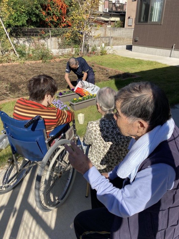 以前、居らしたご利用者様のご家族様から素敵なパンジーとビオラを頂きました♪ご利用者様が見守る中プランターの衣替えをしてとっても可愛くなりました♡お心遣いありがとうございます。これからもスタッフ一同、頑張って参ります♪