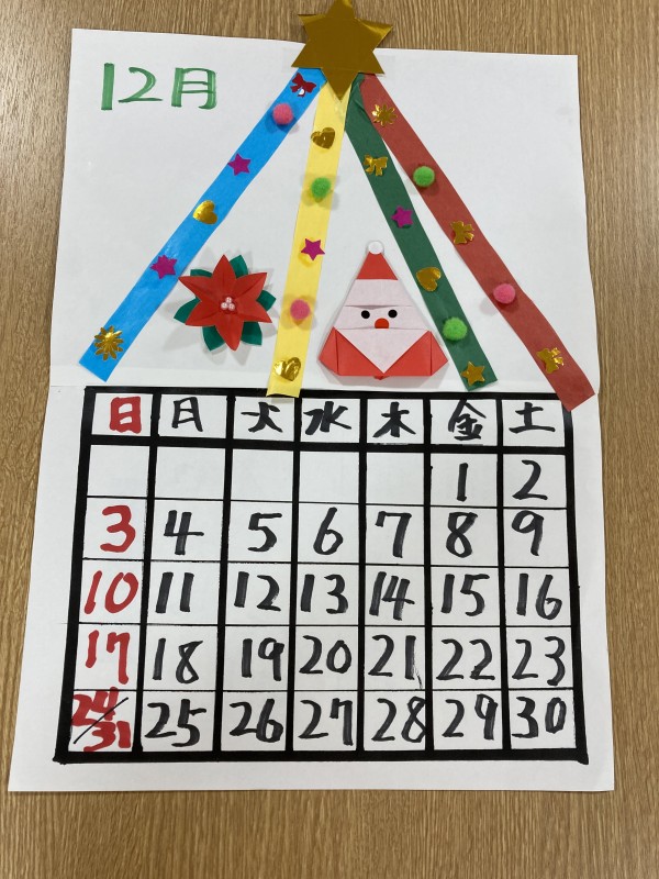 利用者様が数字も書いてくれて完成です♪( ´▽`)12月の居室が楽しみですね♡