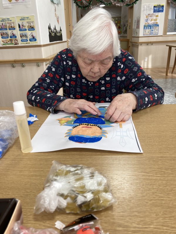 職員と一緒に七福神の作成中!皆で福を呼びましょう♪