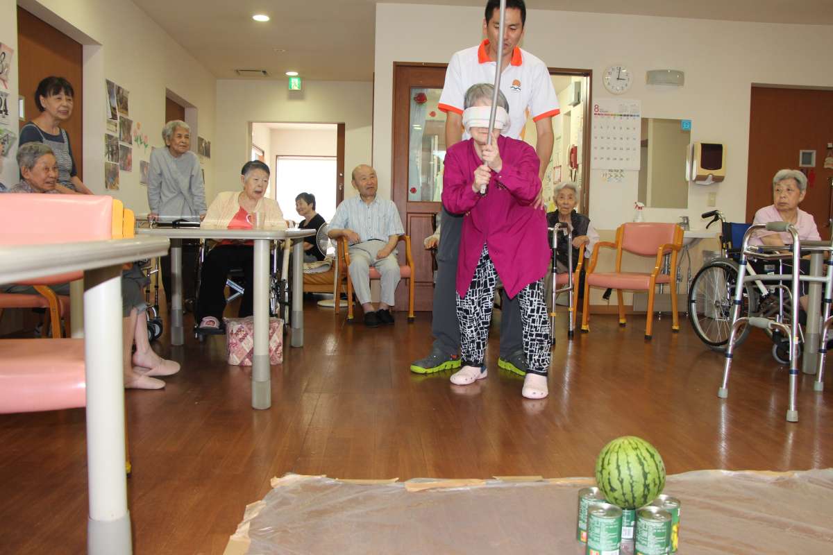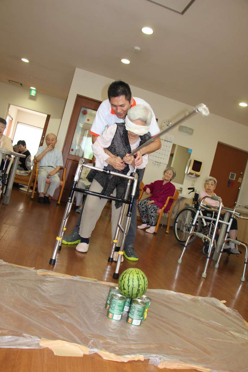 割ったスイカをおやつで出させてもらい、美味しく食べて頂きました(●^o^●)