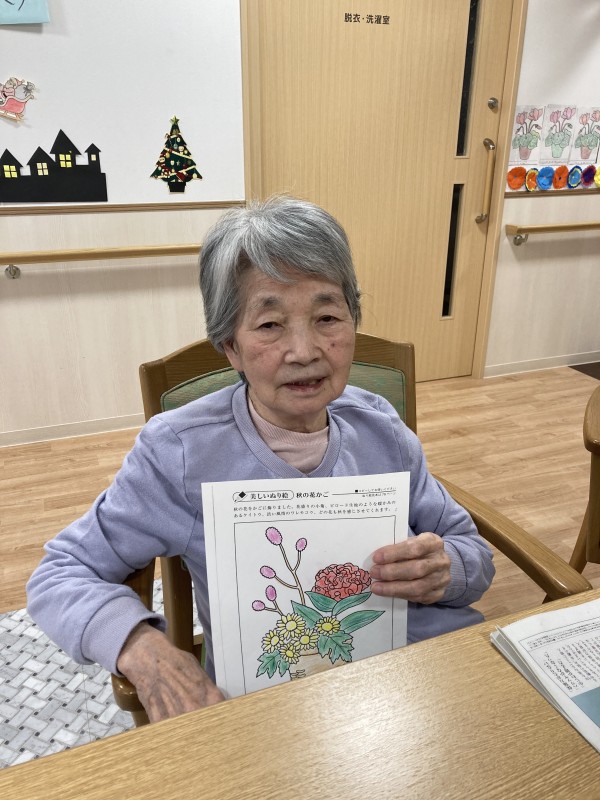 塗り絵では皆さんどの色にするか、配色はどうするか、考えながら丁寧に塗られます♡