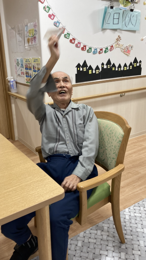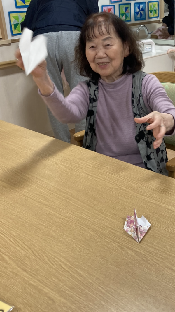 「昔はよく作って飛ばしたよ(*´∀`)♪」と思い出話しが弾むなか紙飛行機を作り飛ばして見ました。皆さん、さすがですね〜(^_^)v