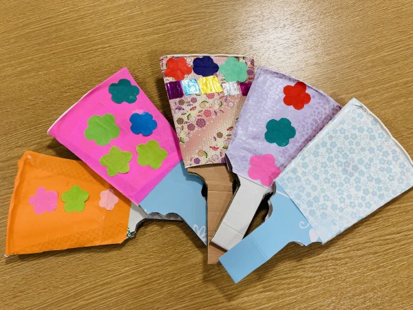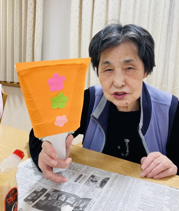 フロアでは紙コップや折り紙で可愛い羽子板を作成中です!