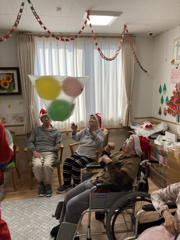 筒送りゲームやクリスマスの歌、いろはカルタゲームに大きな風船バレー♪