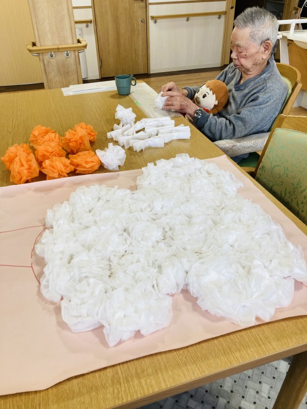 朝から和気あいあい、楽しい声が聞こえてきました♪何を作っているのでしょうか?