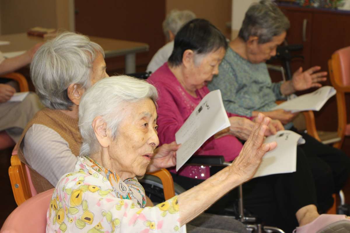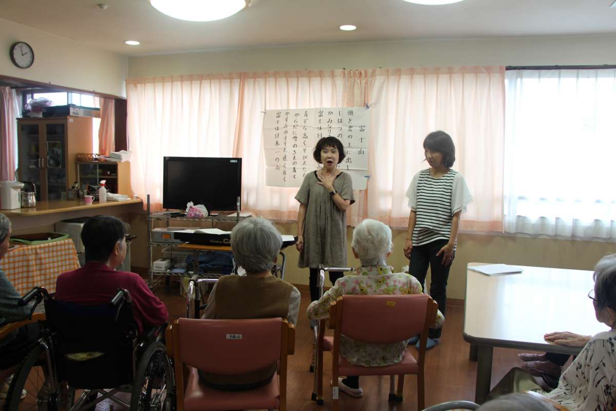 スタートは手振りがついた「富士山」♪あたまをくものうえにだし~♪ 皆様よくご存じの歌なので歌いながら動かれています。