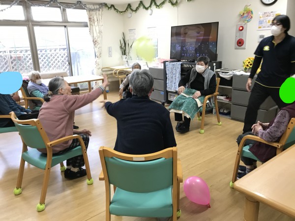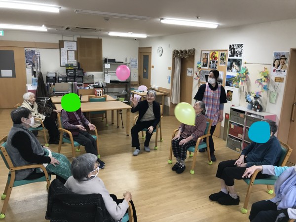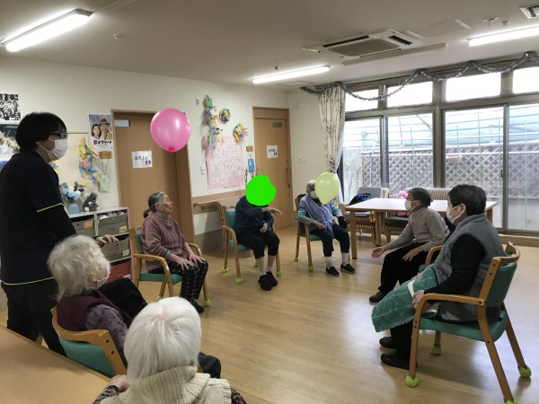 最初は風船を1つで行いみなさんに慣れてもらってから風船をもう一つ増やし、