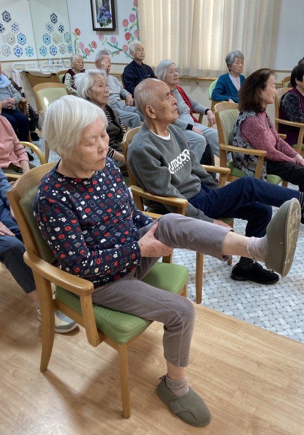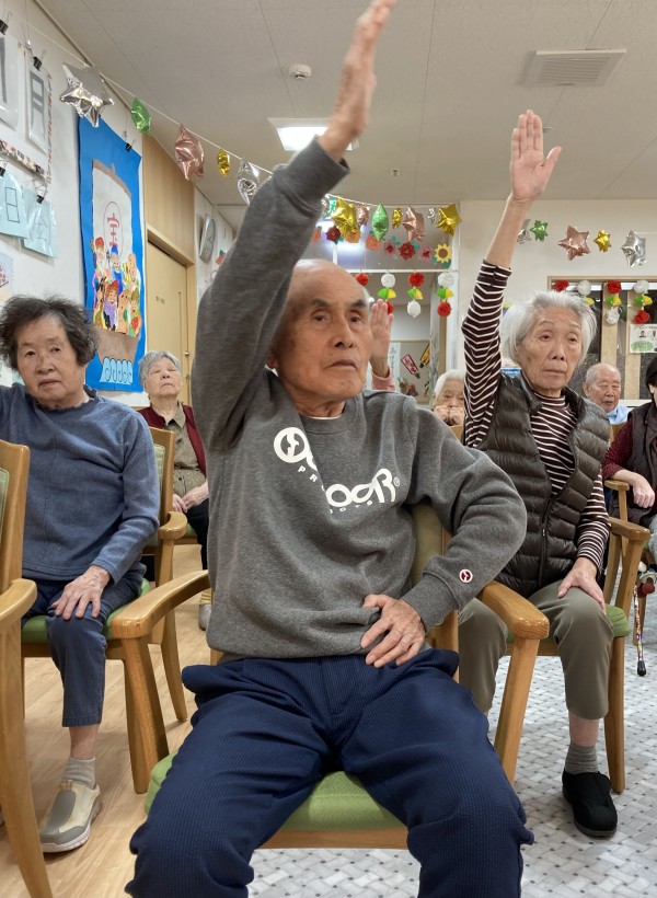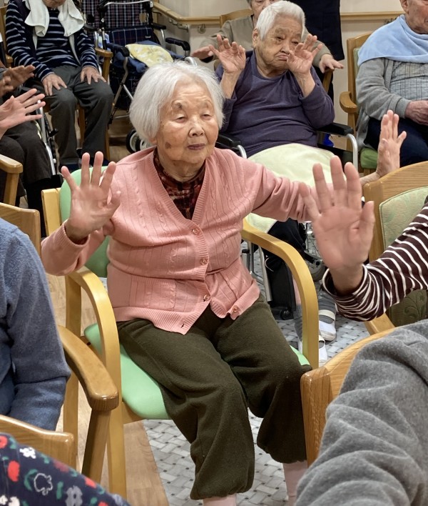 普段はフロアで午前と午後の1日2回、体操の時間があり、皆さん頑張っています。