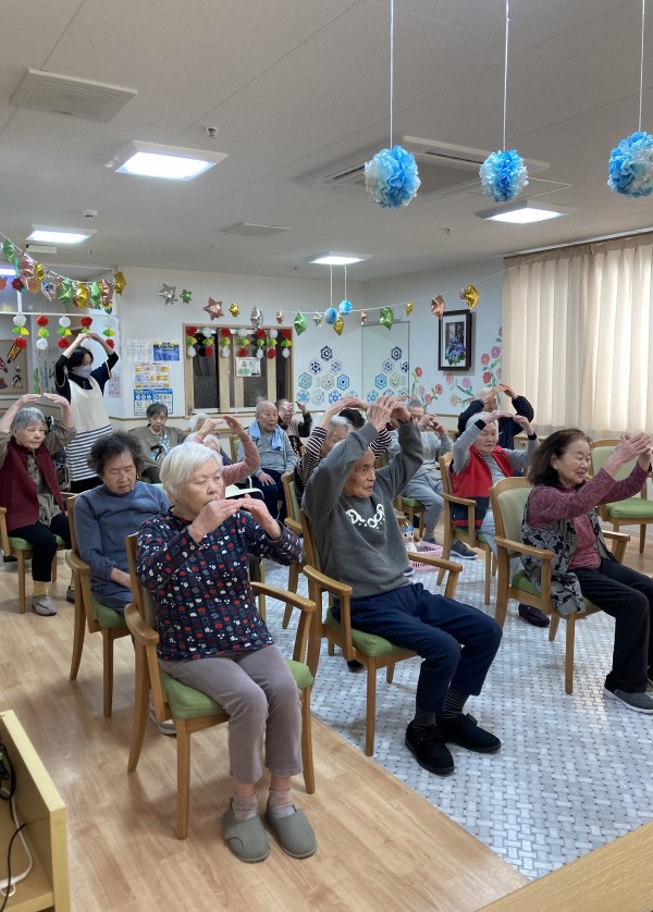 本日はいきいきリズム体操♪手足をリズムに合わせて楽しく動かしていきましょう!