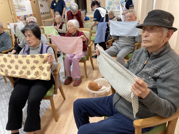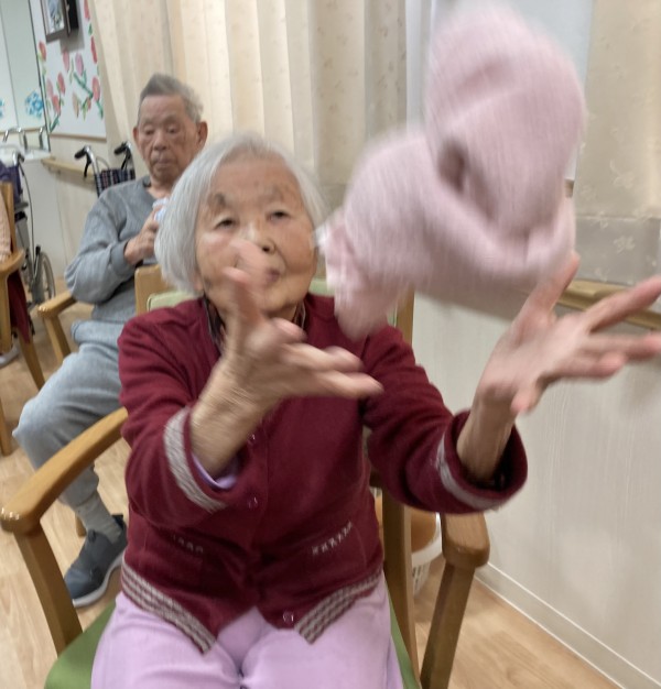 タオルを投げて〜キャッチ!皆さんお上手です♪