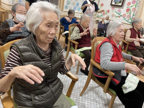 リモートタオル体操の始まりです。全フロアの皆さん一緒に頑張りましょう♪
