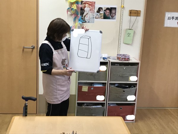色々悩むと思いますが、職員の描いた絵をみてご利用者さんたちに何を描いたか考えて頂きます。
