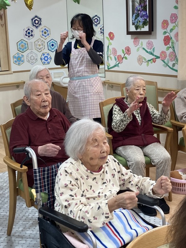先生の掛け声に合わせて体をほぐしていくと‥ポカポカしてきました♪