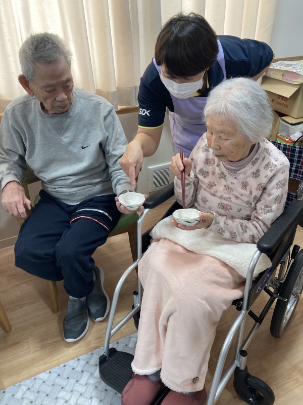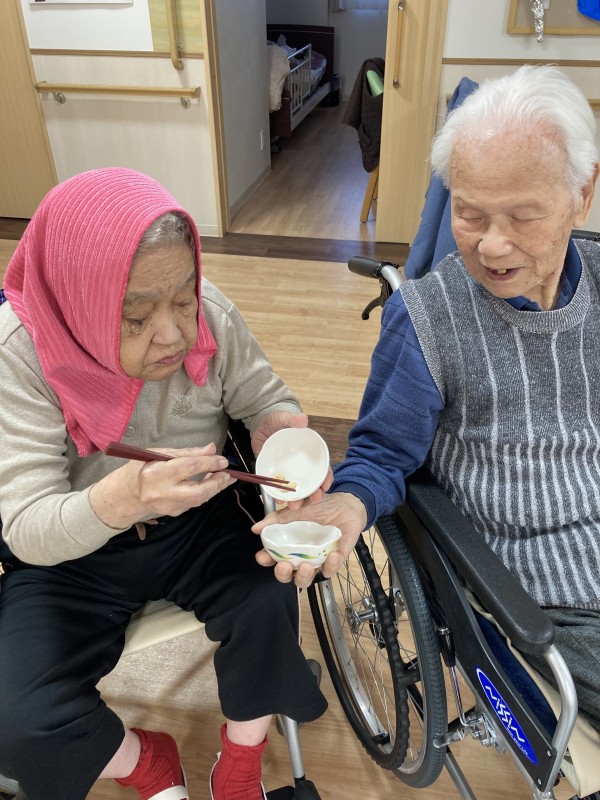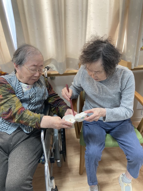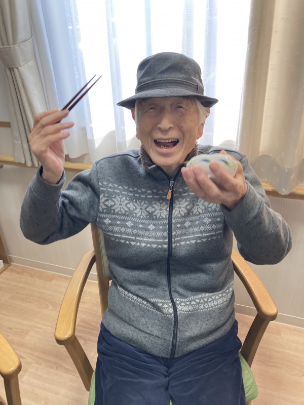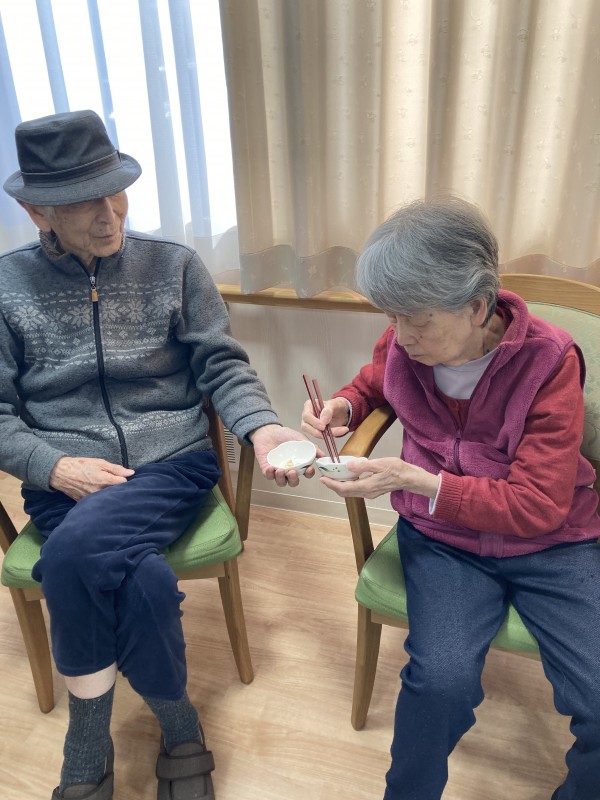 「豆つかみゲーム」ではお箸で上手に隣のお皿に移す人、お皿ごと移す人それぞれでとても盛り上がりました〜????