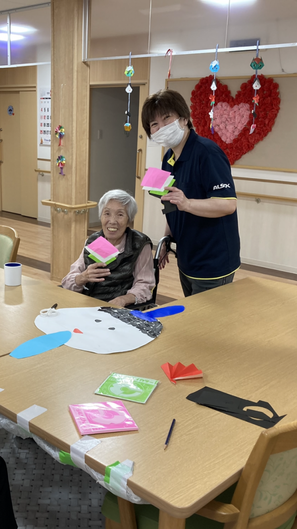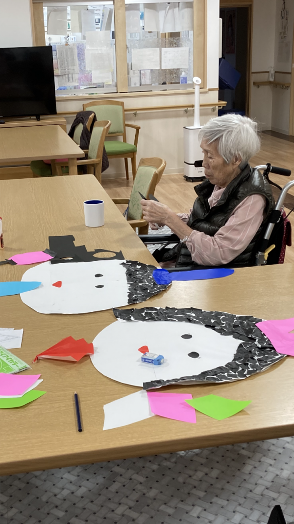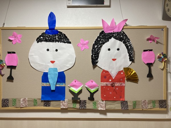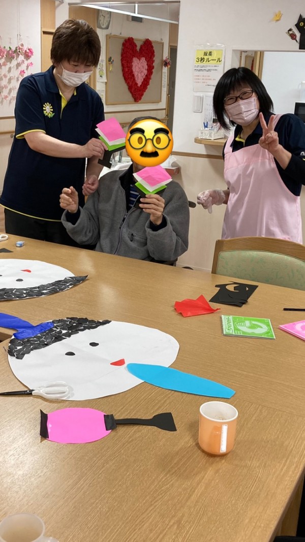 ご利用者様のペースで毎日少しずつ作るお雛様♪今回は、ぼんぼり&ひし餅が出来ました〜\(^o^)/。あと…足りないのは何かなぁ?