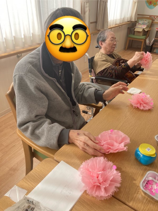 応援しながら桜の花を作成中のご利用者様*\(^o^)/*